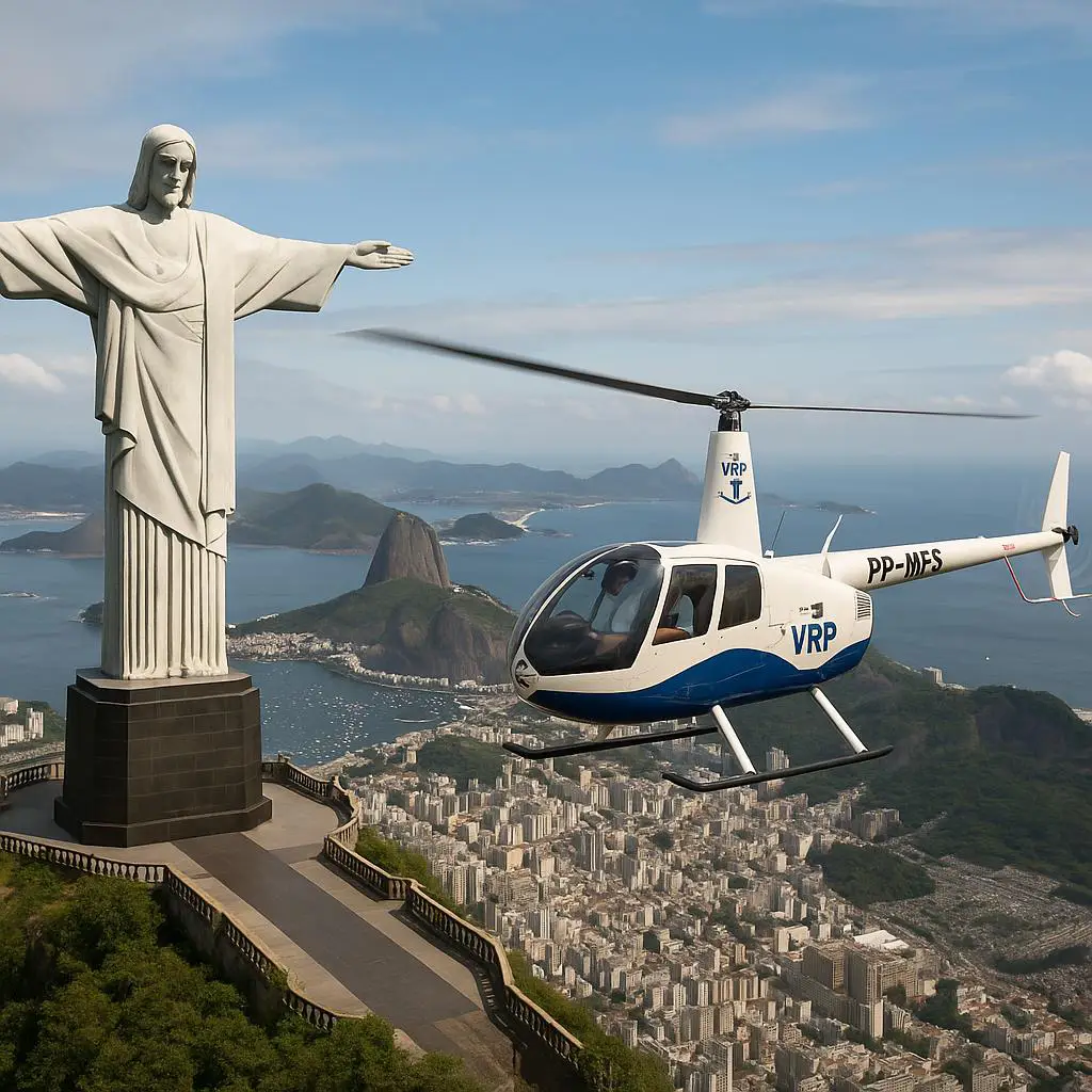Voo panorâmico de Helicóptero sobre os pontos turísticos do Rio de Janeiro.